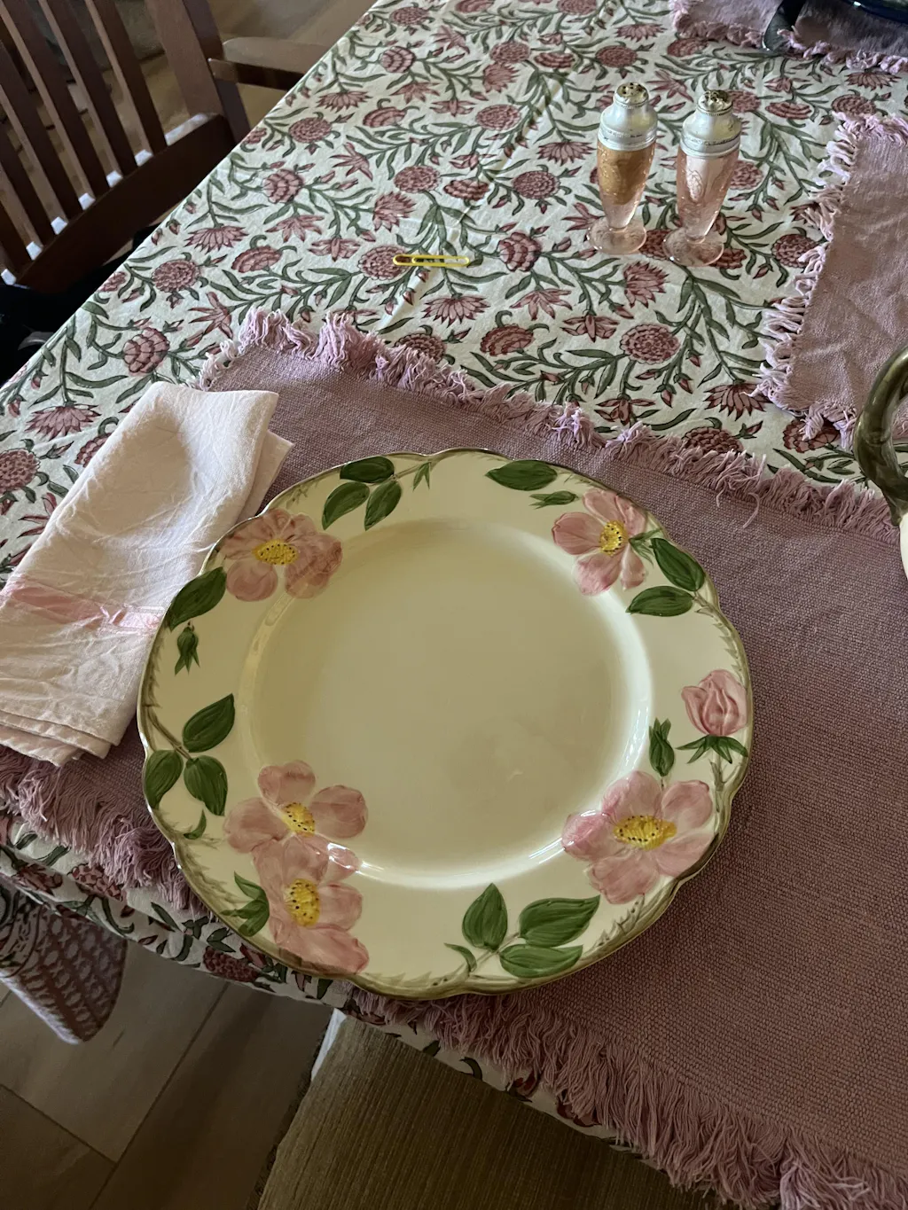 I had a jigsaw puzzle on my table so I just put my tablecloth on today (I finally gave up on that 1,500-piece puzzle). I love the springtime look the cloth gives my dining room!