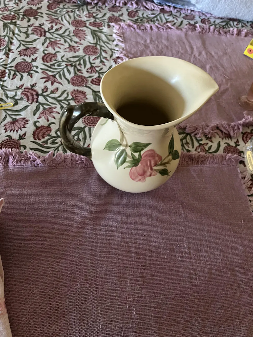 I love this table cloth. I bought this for the cotton material and to use with my inherited collection of Dessert Rose, but find myself using it with several other dish sets as well because it is so bright and pretty. I will probably order another color next month. Thank you!!