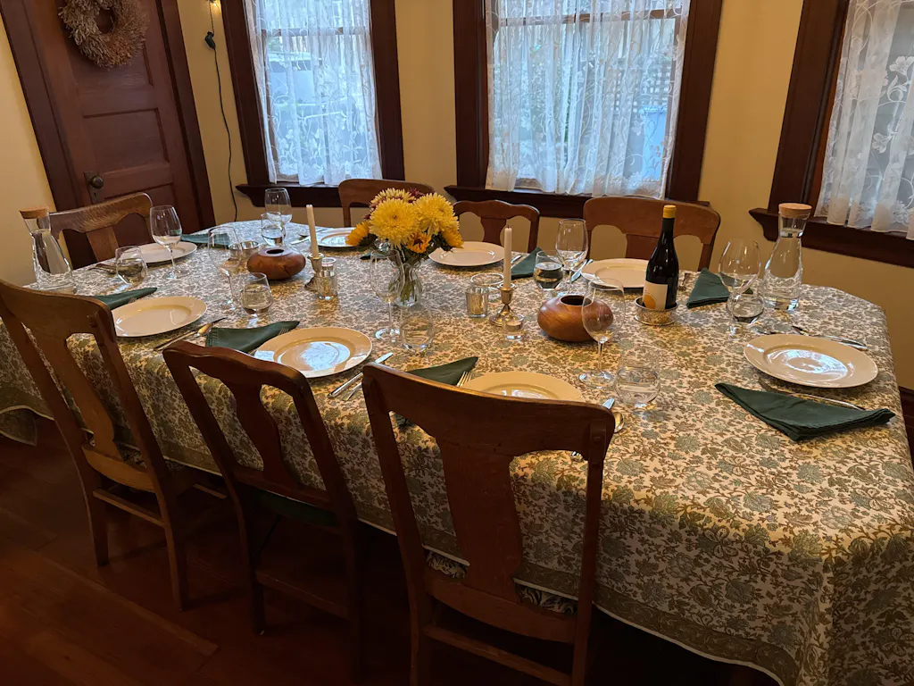 I love my new tablecloth. I’ve been to Jaipur so I have seen the block prints being made. I just love the colors and that it hangs over nicely on all sides of the table. I hope to buy more as gifts.