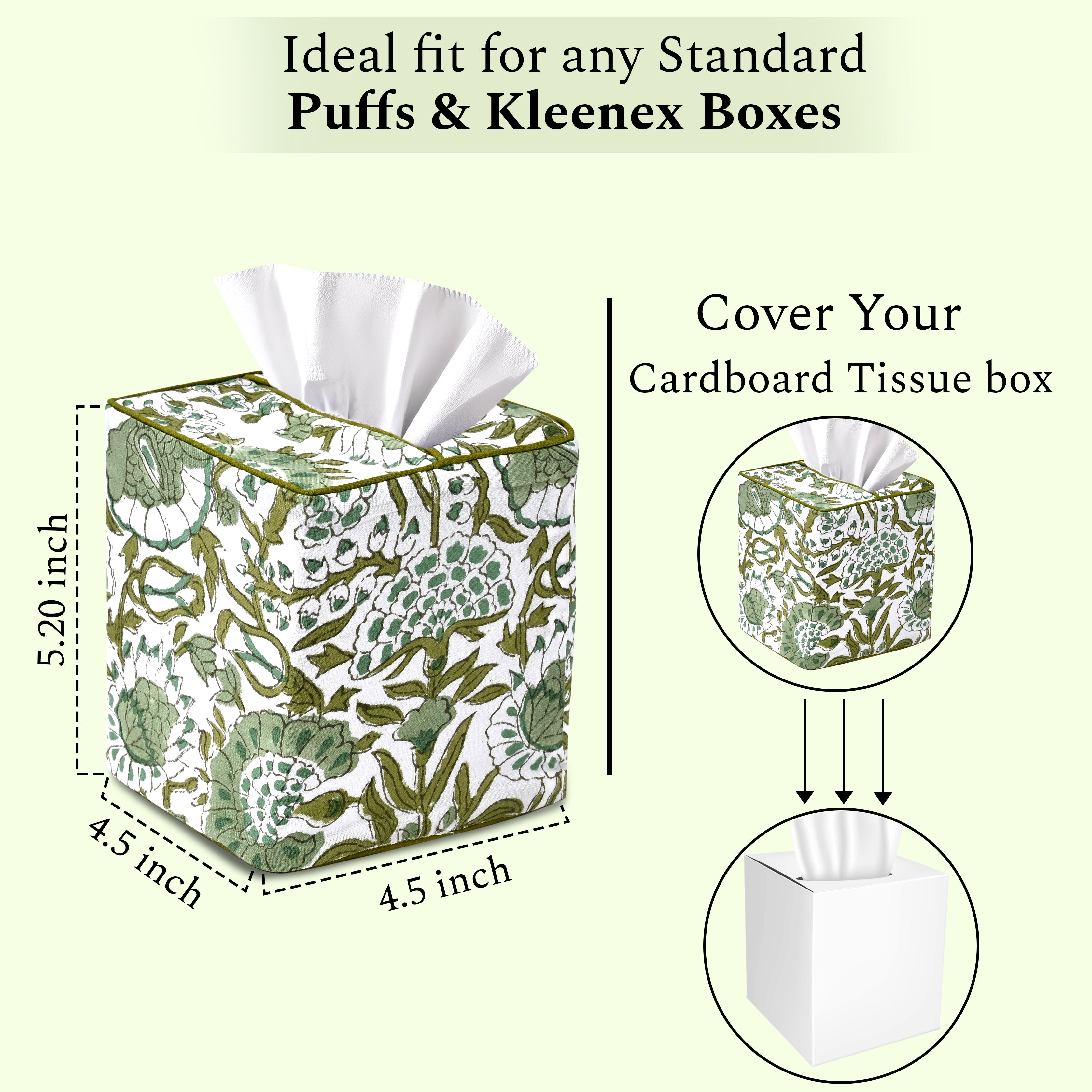 100% Cotton Hand Block Printed Tissue Box Cover - Agate Green