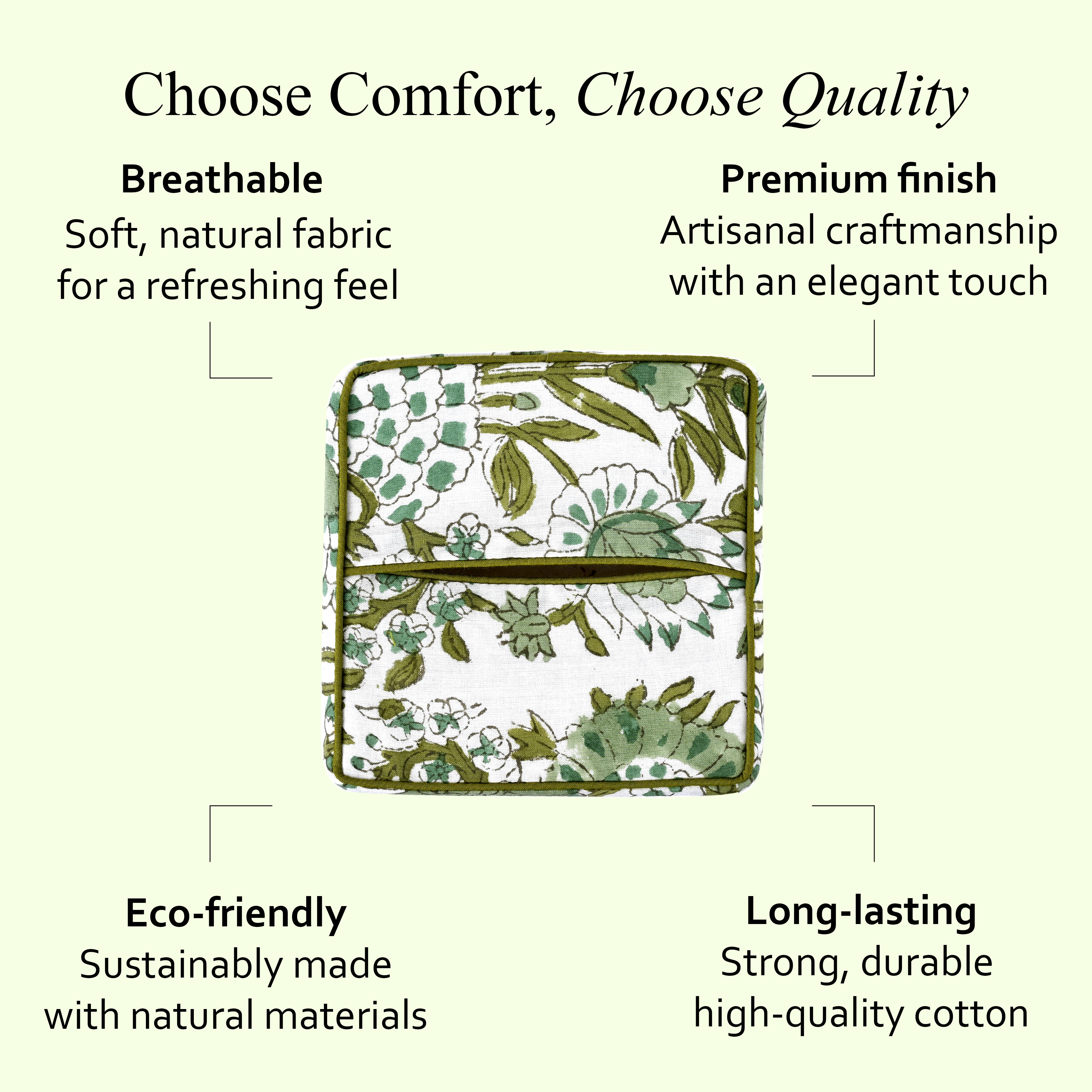 Dress up your tissues with our handcrafted, 100% cotton block printed covers — blending artisan charm with modern functionality.