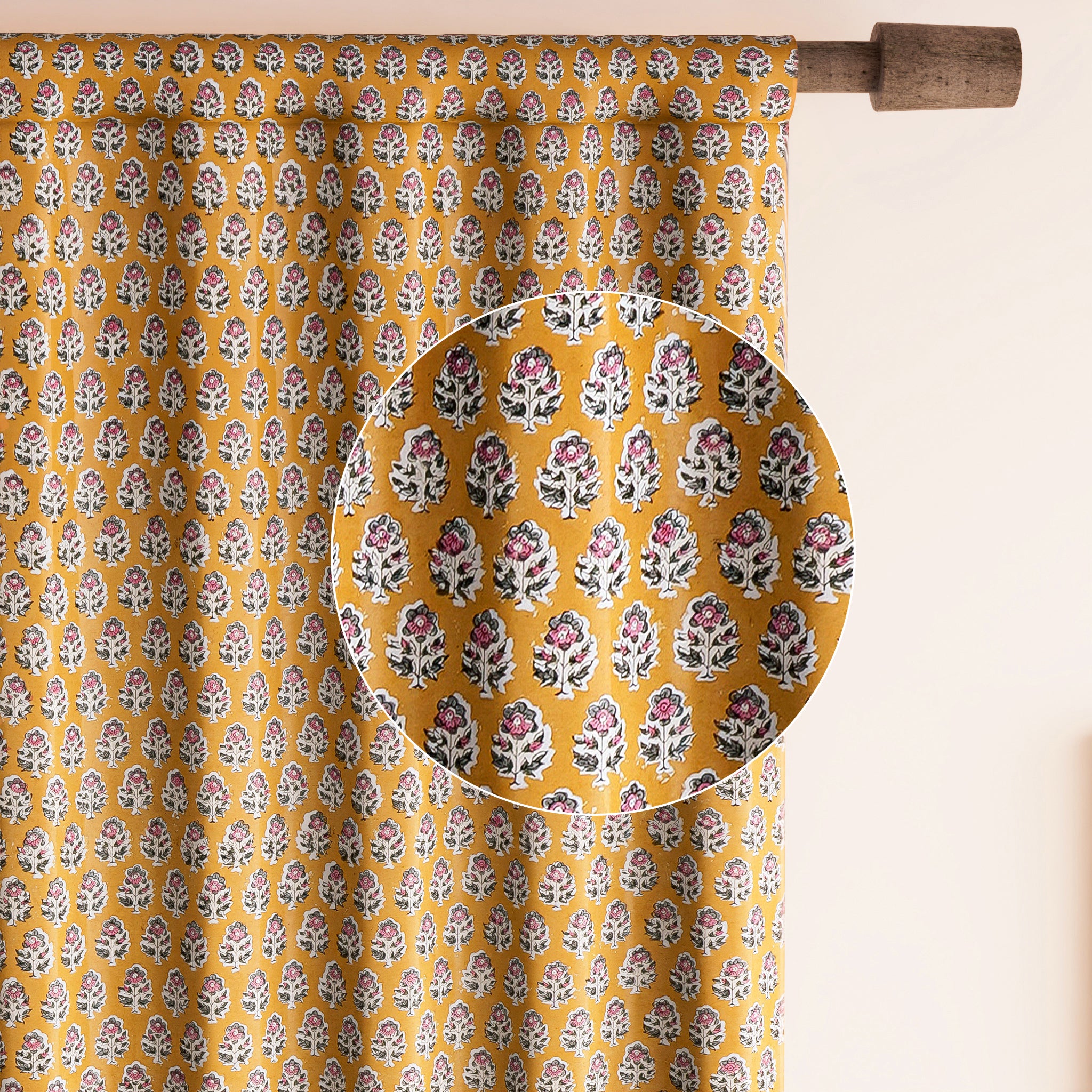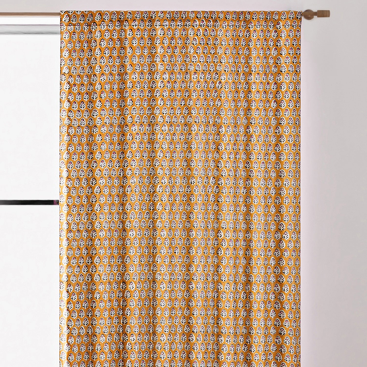Semi-Sheer Cotton Block Print Curtains - Yellow Citrine