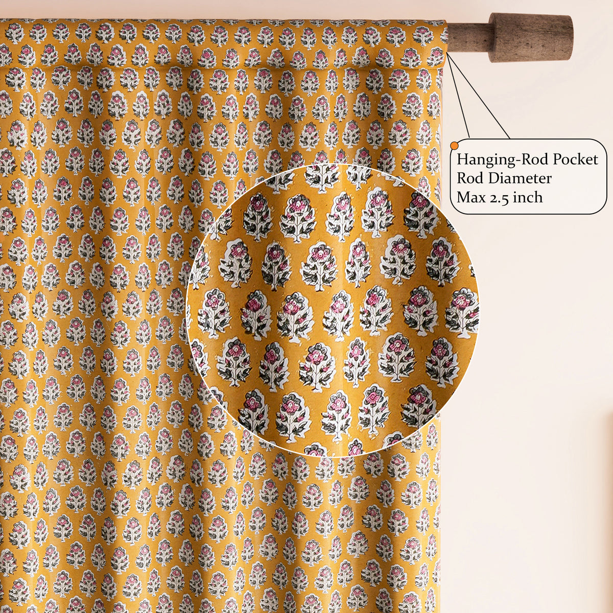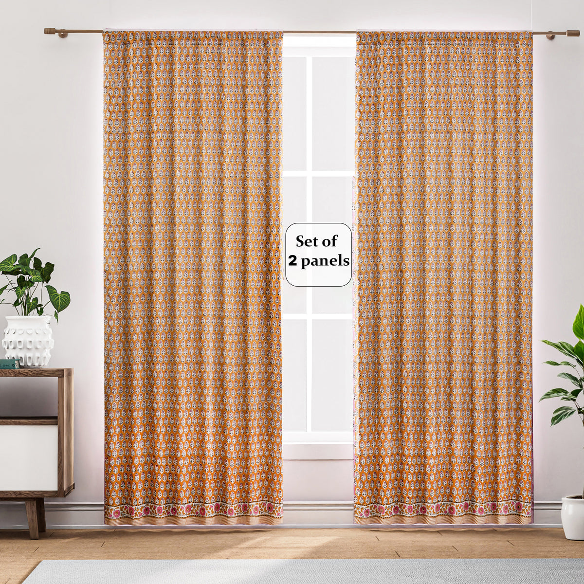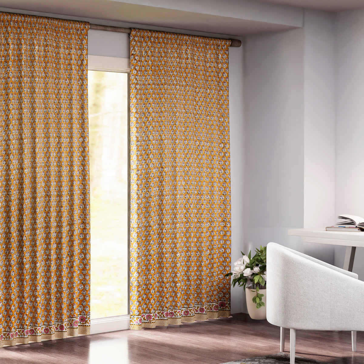 Let natural light filter through with our semi-sheer cotton block print curtains, designed for a soft, elegant touch in any space. These 100% cotton farmhouse-style drapes feature intricate handmade block prints, bringing a vintage-inspired charm to your living room, kitchen, bedroom, or cozy cottage space.