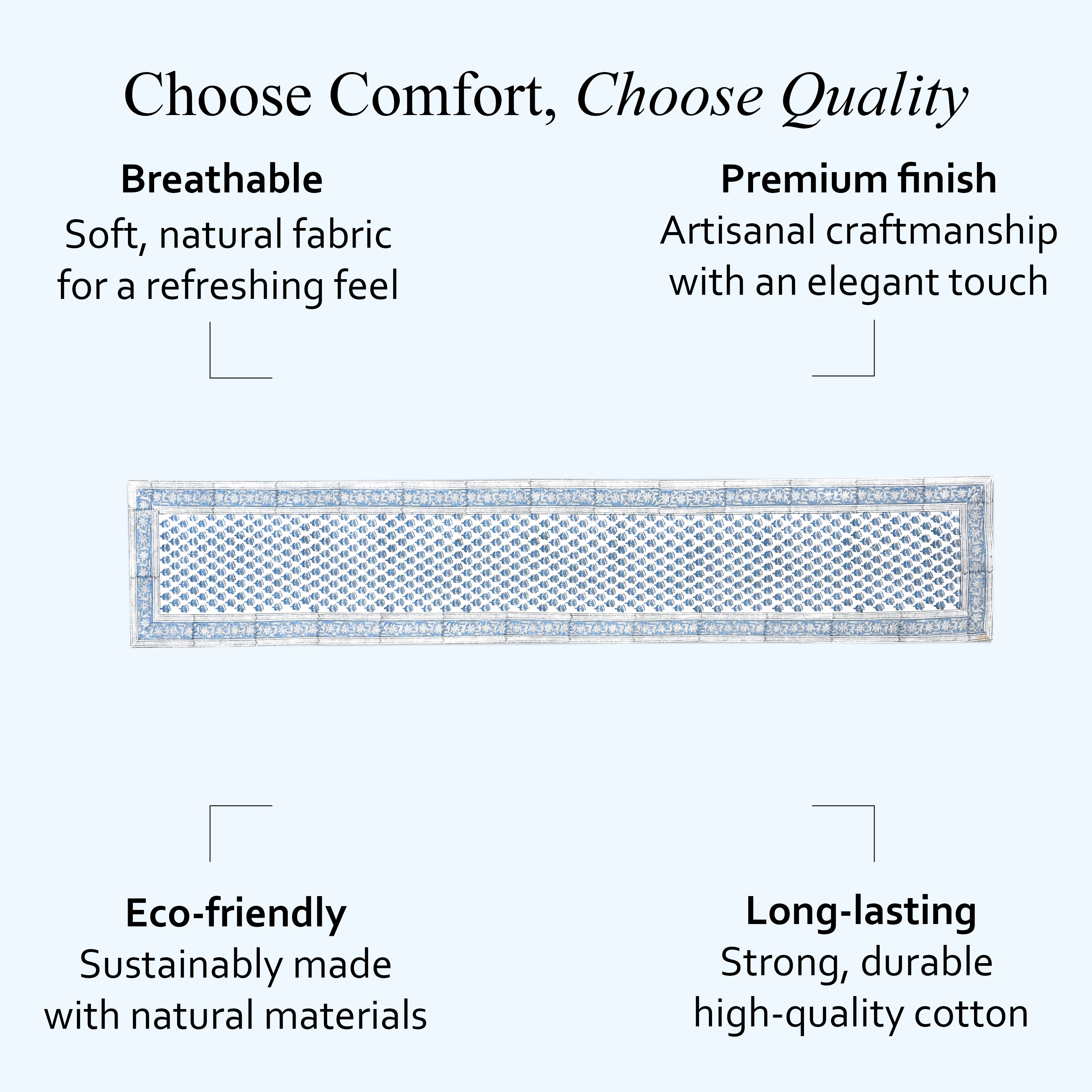 - Handmade Block Print: Each tablerunner is handcrafted by artisans, bringing traditional charm to your home.