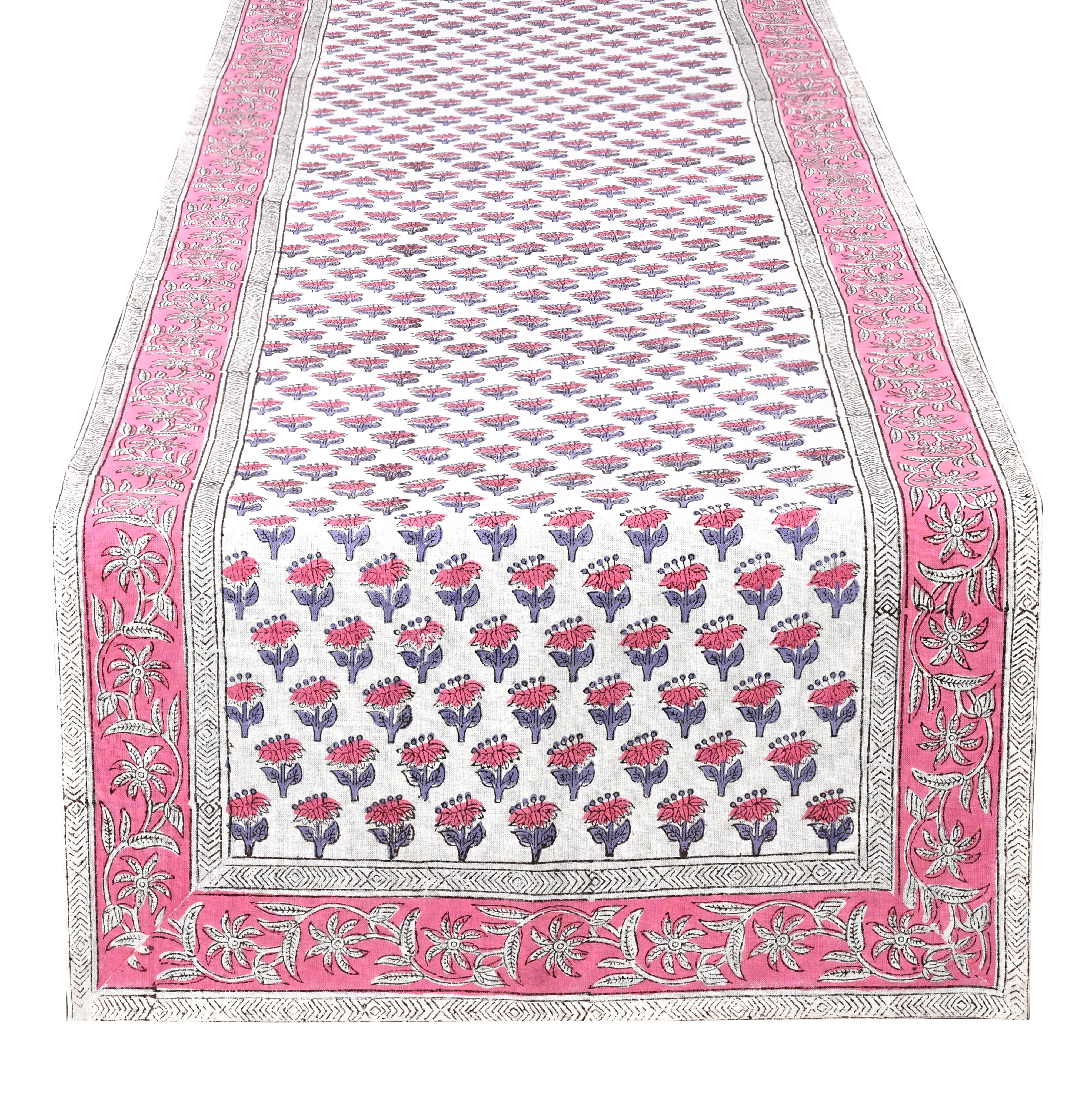 Cotton Block Print Table Runner - Pink Sapphire