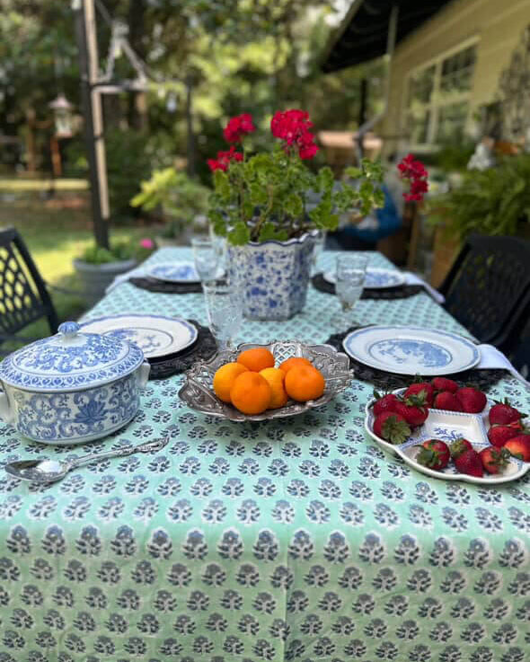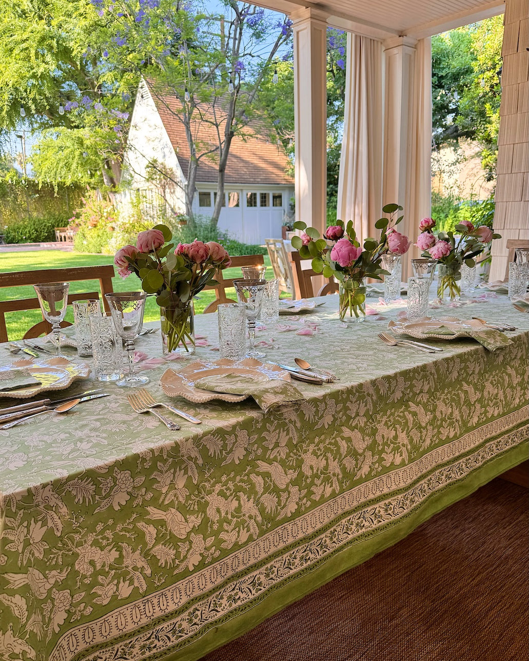 Our 100% cotton hand block printed tablecloths are as practical as they are beautiful. Whether it’s a splash of red wine or a messy dinner party moment, these heirloom-quality fabrics are machine washable and made to clean up with ease — no stress, no stains left behind.