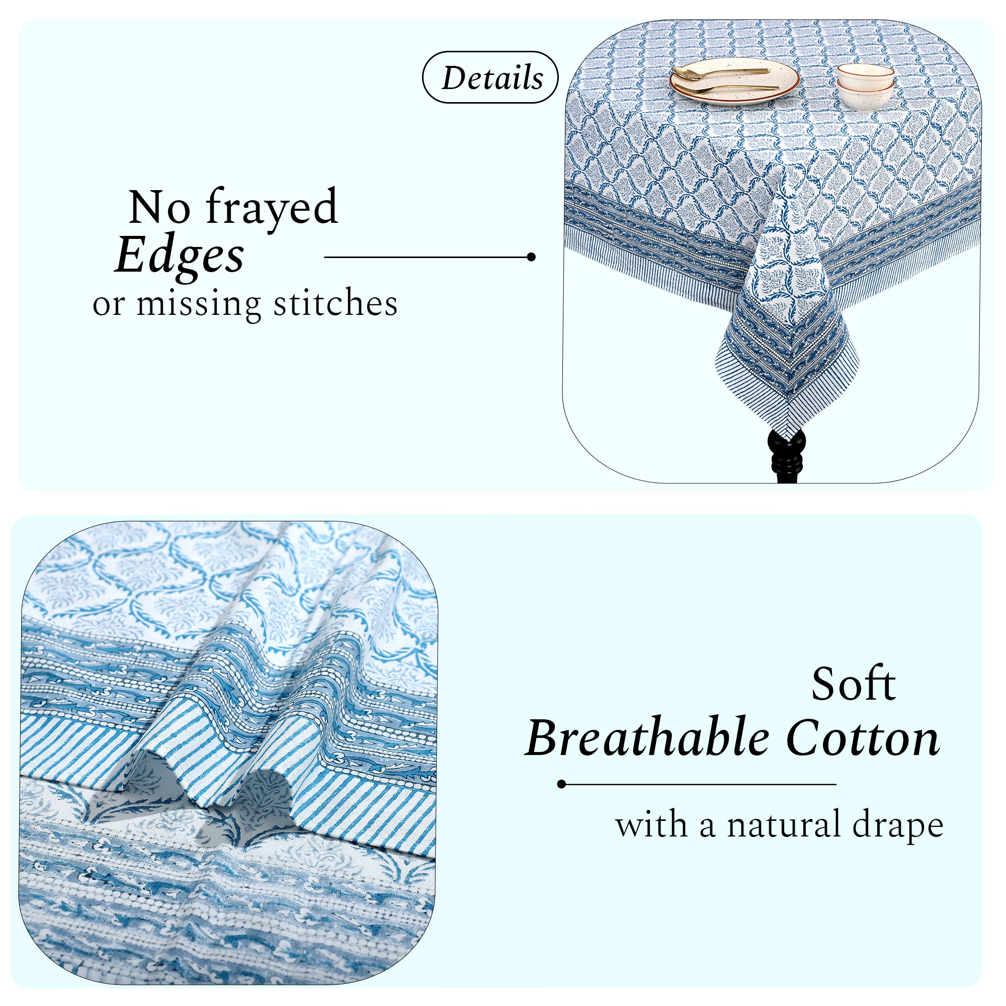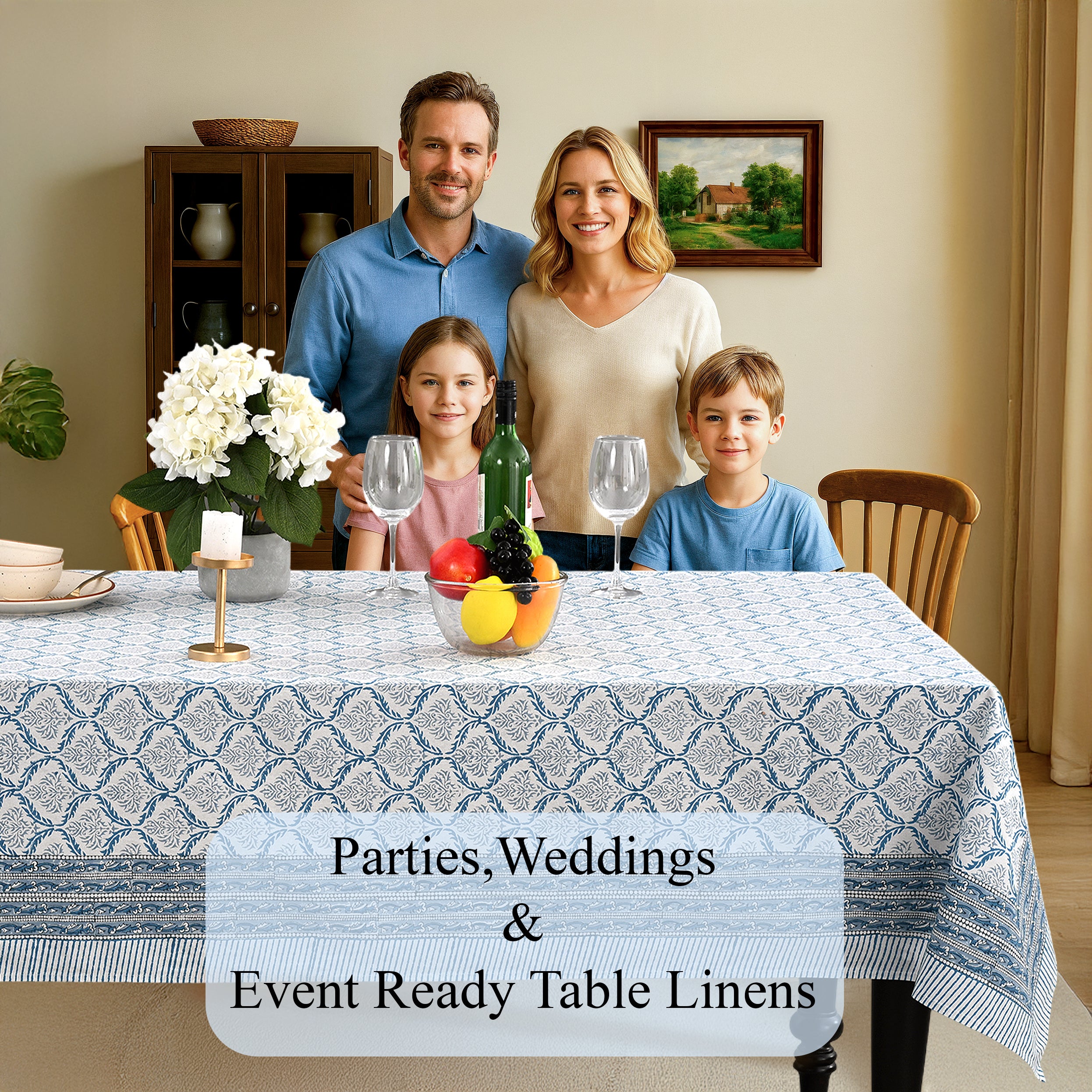 - Handmade Block Print: Each tablecloth is handcrafted by artisans, bringing traditional charm to your home.