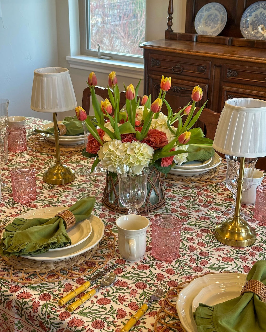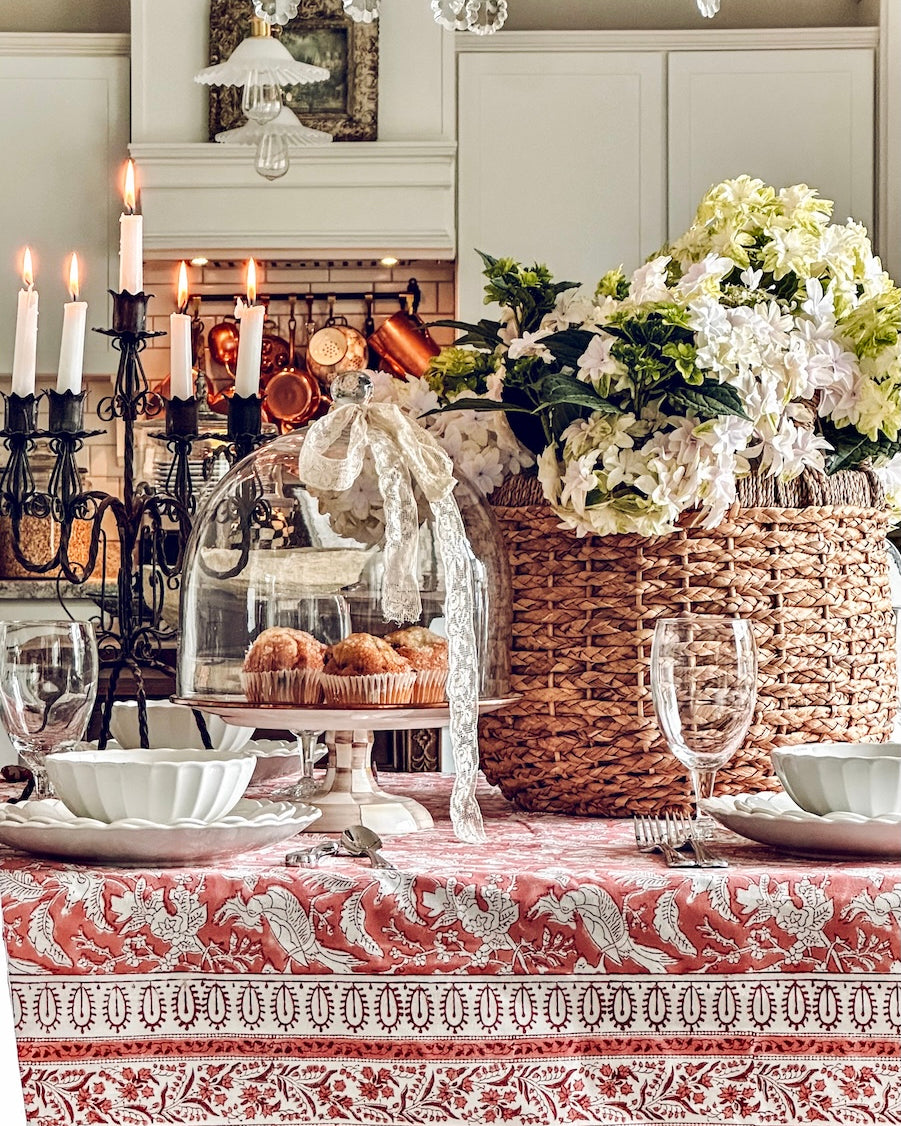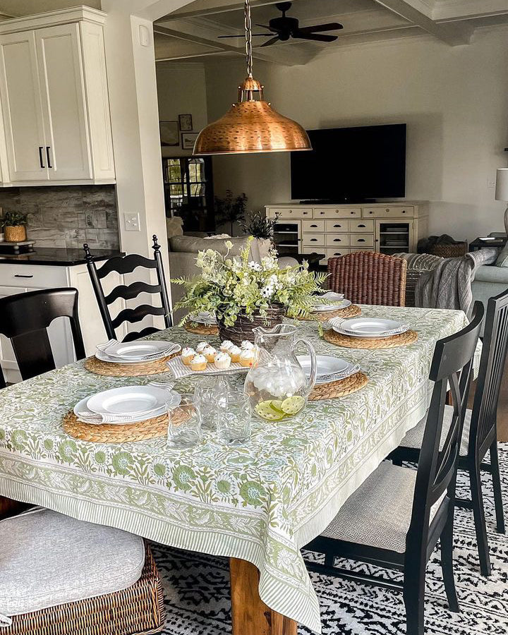 Transform your dining space with our handmade block print cotton tablecloths, designed for lovers of grandmillennial, farmhouse, and vintage home decor. Whether you're hosting a casual brunch or planning a formal wedding reception, these elegant yet practical table linens bring charm and character to any occasion.