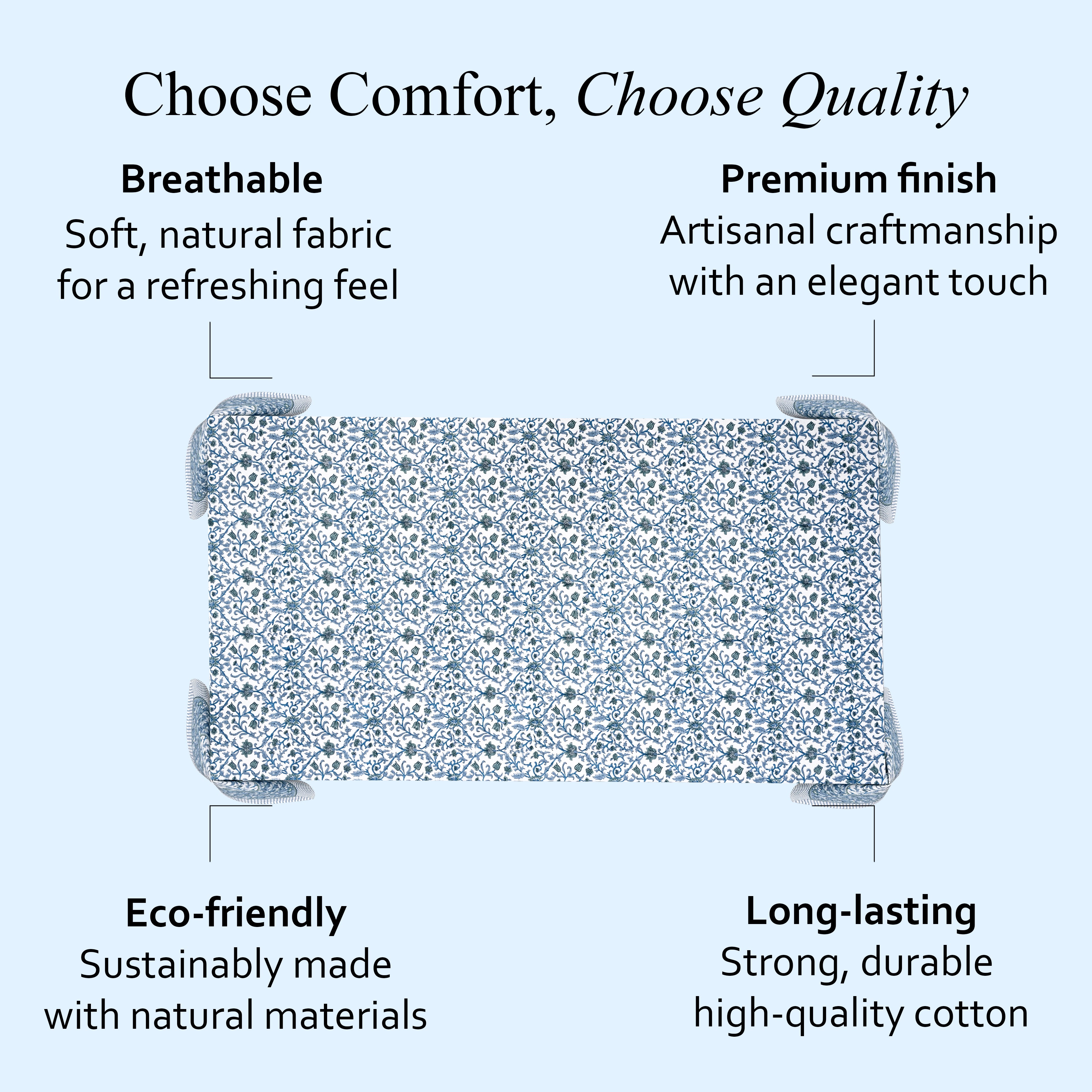 Use a mild detergent to protect the natural fibers and preserve the vibrant colors of our block prints.