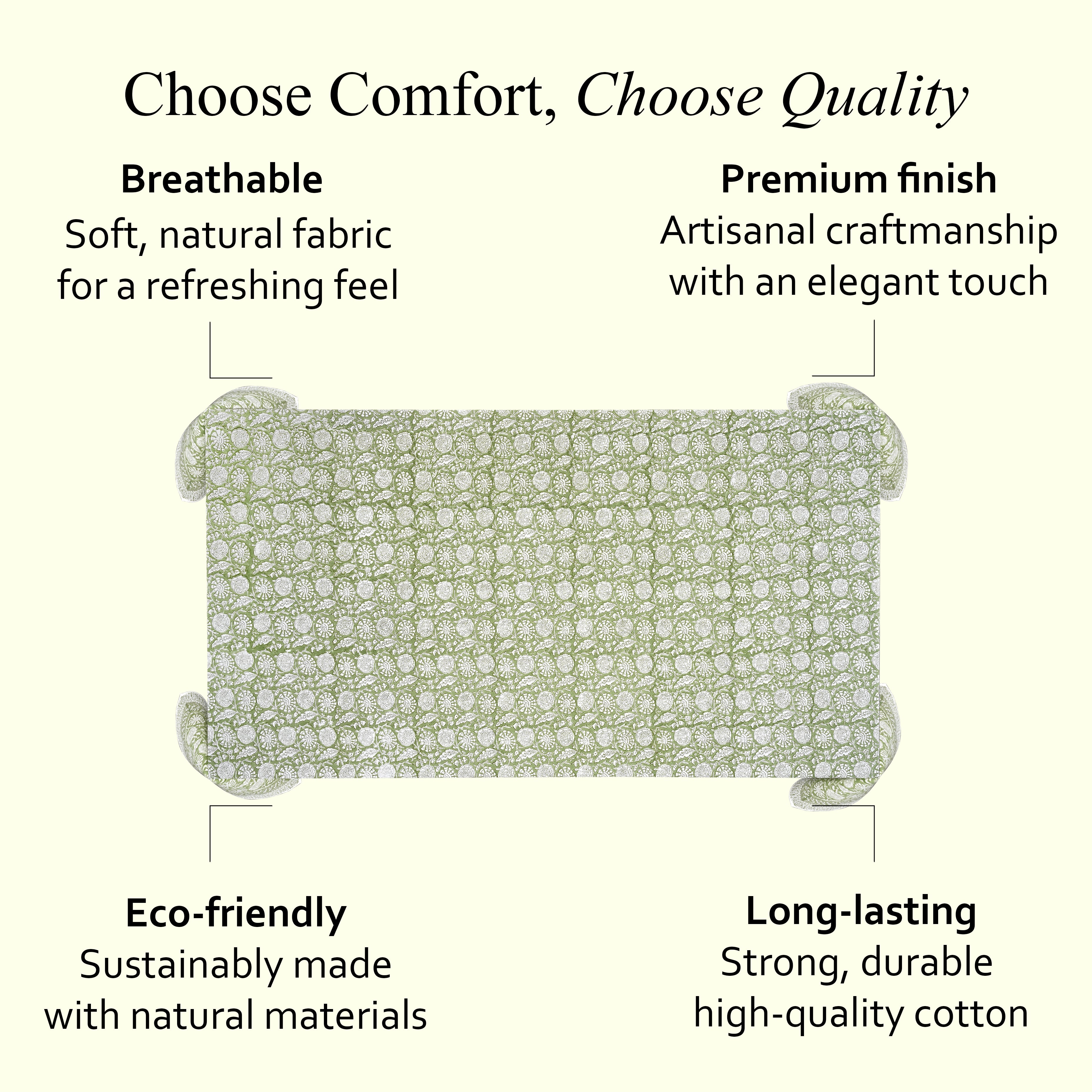 - Handmade Block Print: Each tablecloth is handcrafted by artisans, bringing traditional charm to your home.