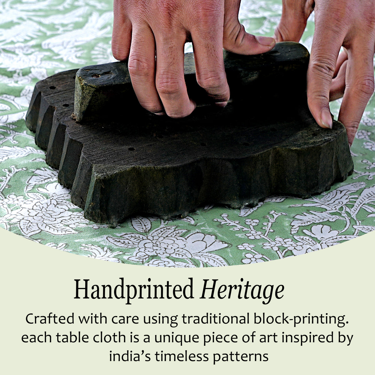 - Handmade Block Print: Each tablecloth is handcrafted by artisans, bringing traditional charm to your home.