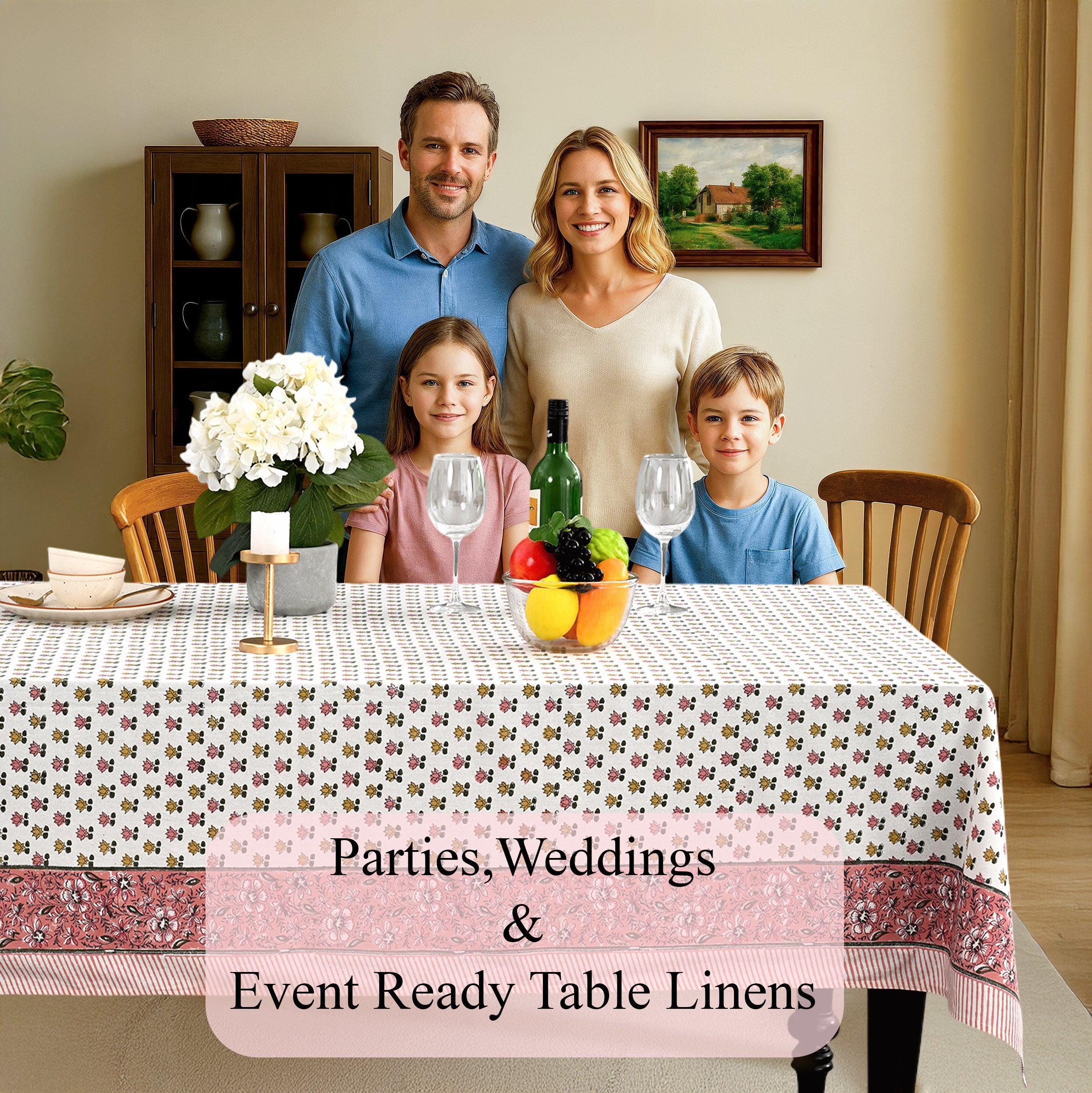 Transform your dining space with our handmade block print cotton tablecloths, designed for lovers of grandmillennial, farmhouse, and vintage home decor. Whether you're hosting a casual brunch or planning a formal wedding reception, these elegant yet practical table linens bring charm and character to any occasion.