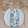 Whether you're hosting a formal dinner, planning a wedding reception, or styling an event, these reusable, machine-washable napkins offer a timeless alternative to disposable options. Featuring intricate hand-printed floral and geometric designs, they add a sophisticated, vintage-inspired aesthetic to any tablescape.