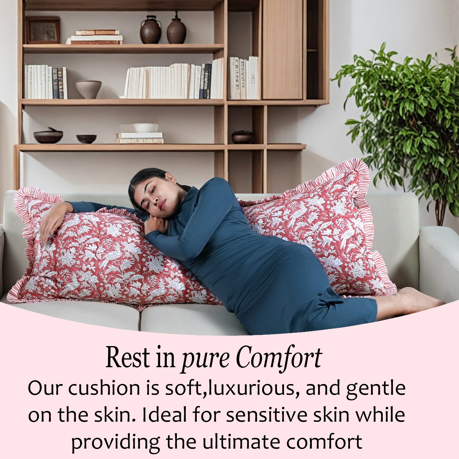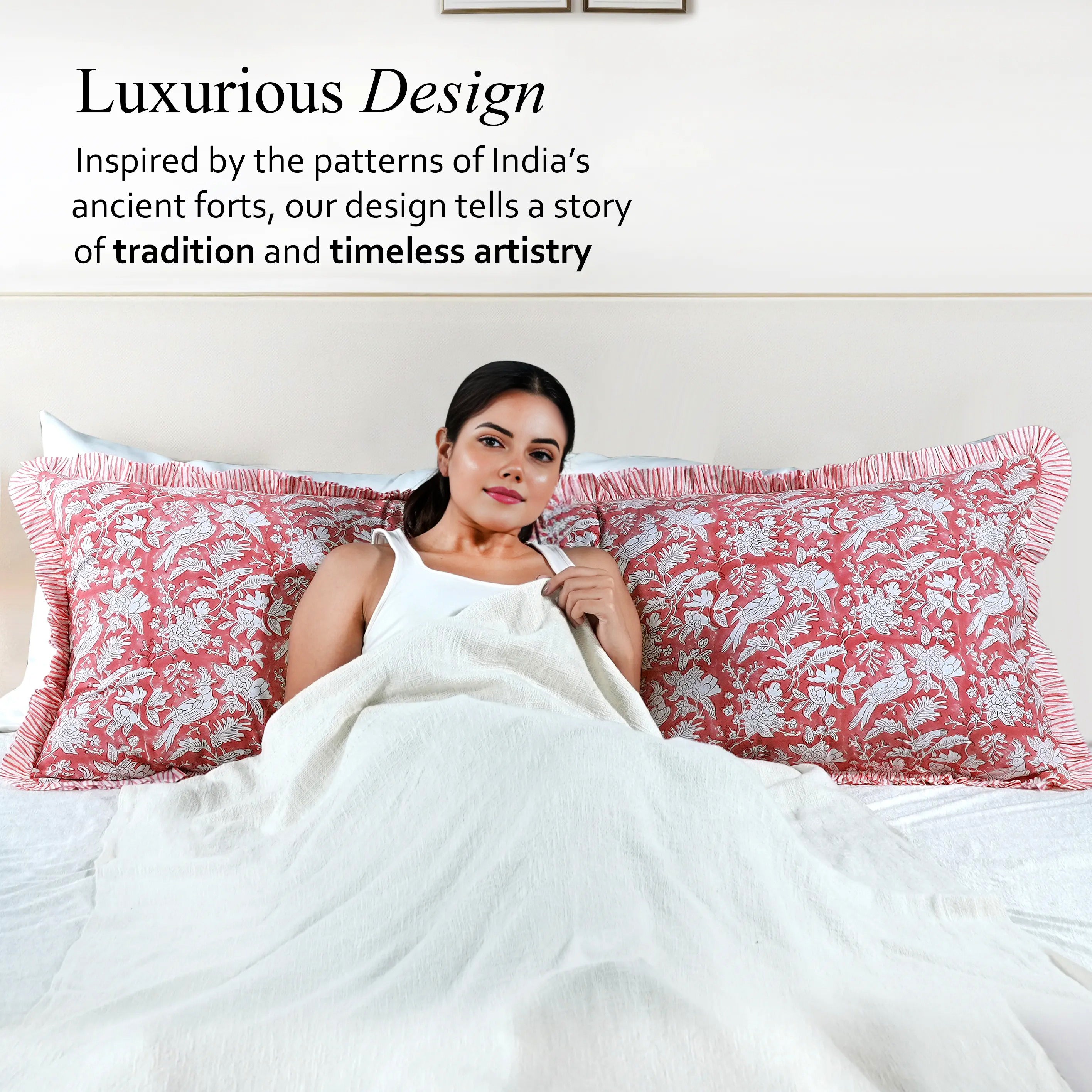 Add a touch of romantic elegance to your bedroom with our handmade cotton ruffle sham cover. Designed for farmhouse, grandmillennial, and cottagecore bedding, this block-printed pillowcase features delicate ruffle trim, soft breathable cotton, and timeless floral patterns.