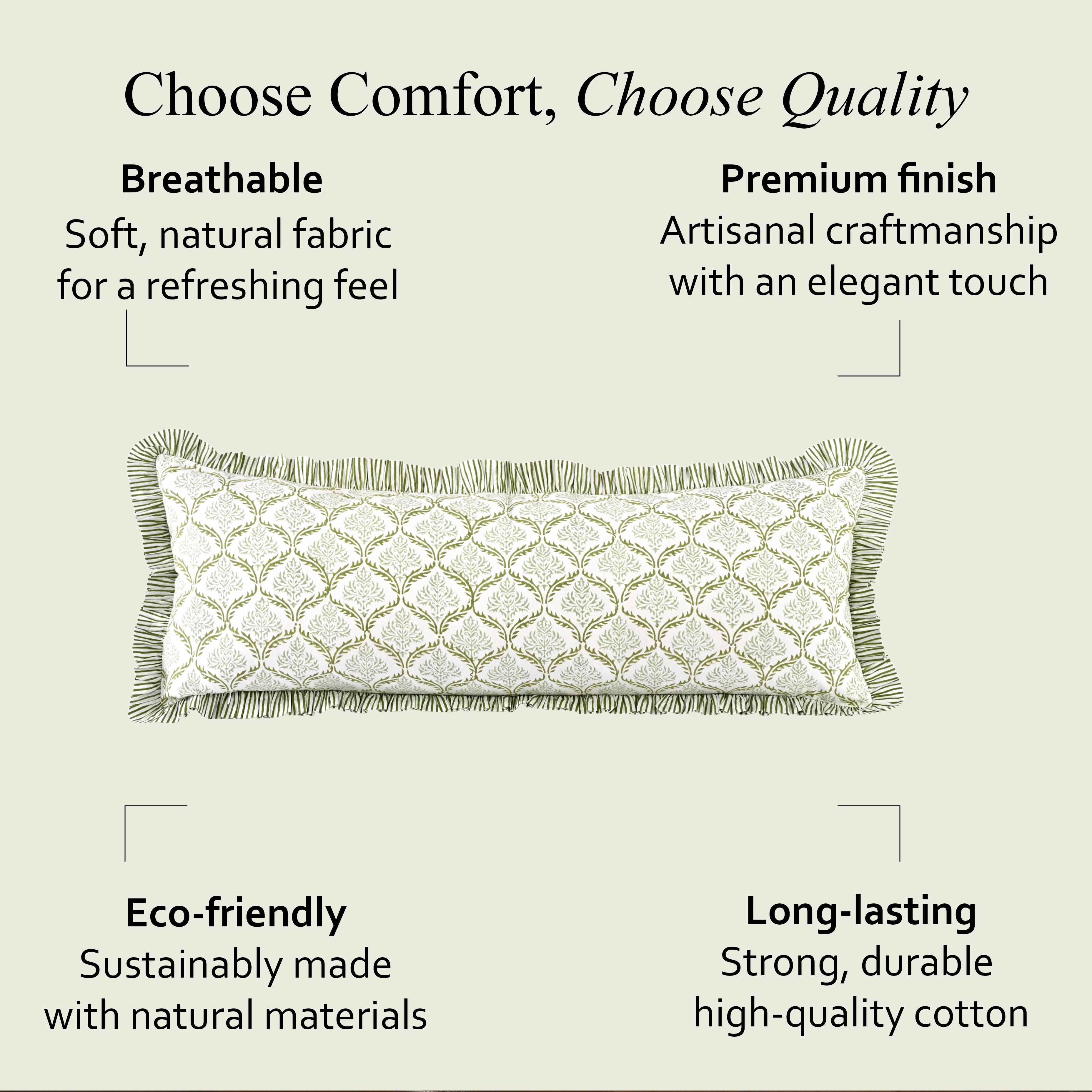 Add a touch of romantic elegance to your bedroom with our handmade cotton ruffle sham cover. Designed for farmhouse, grandmillennial, and cottagecore bedding, this block-printed pillowcase features delicate ruffle trim, soft breathable cotton, and timeless floral patterns.