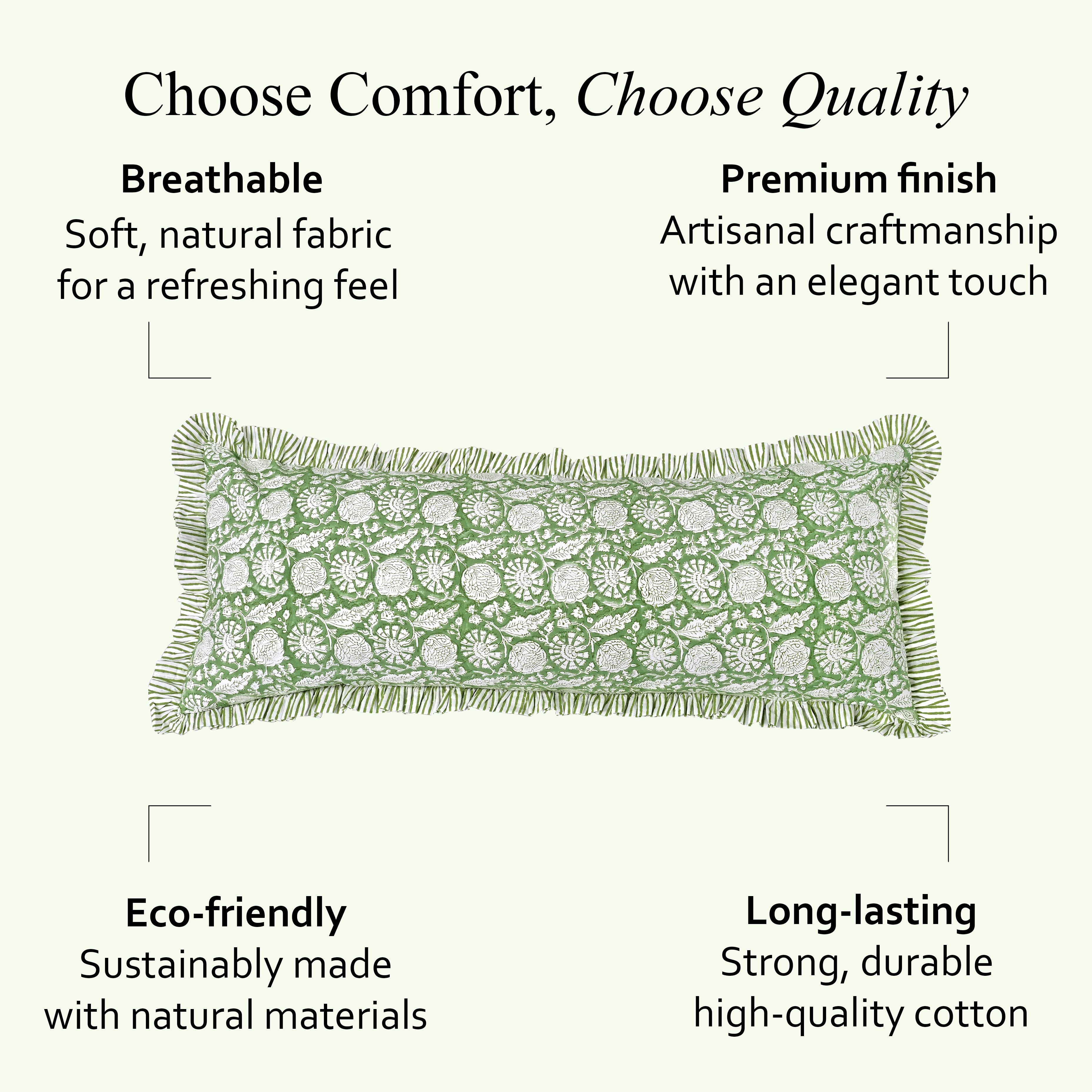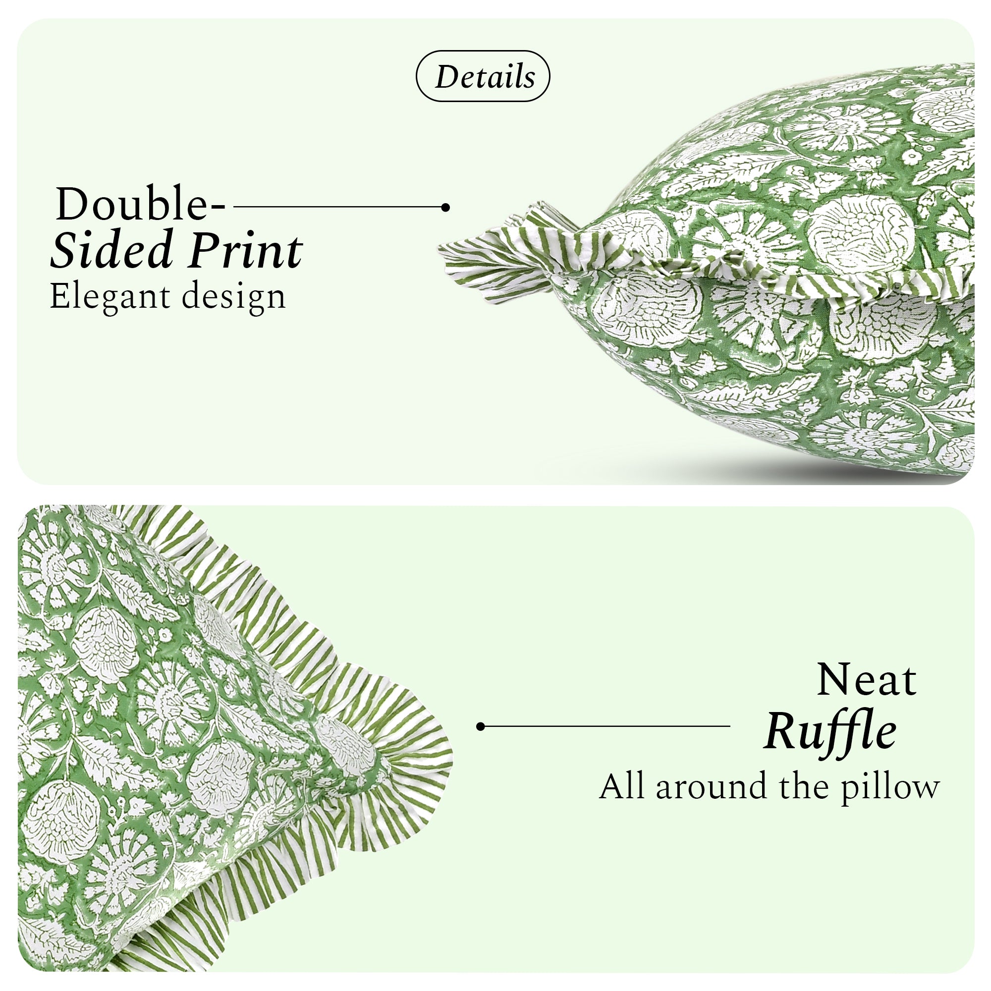 Add a touch of romantic elegance to your bedroom with our handmade cotton ruffle sham cover. Designed for farmhouse, grandmillennial, and cottagecore bedding, this block-printed pillowcase features delicate ruffle trim, soft breathable cotton, and timeless floral patterns.