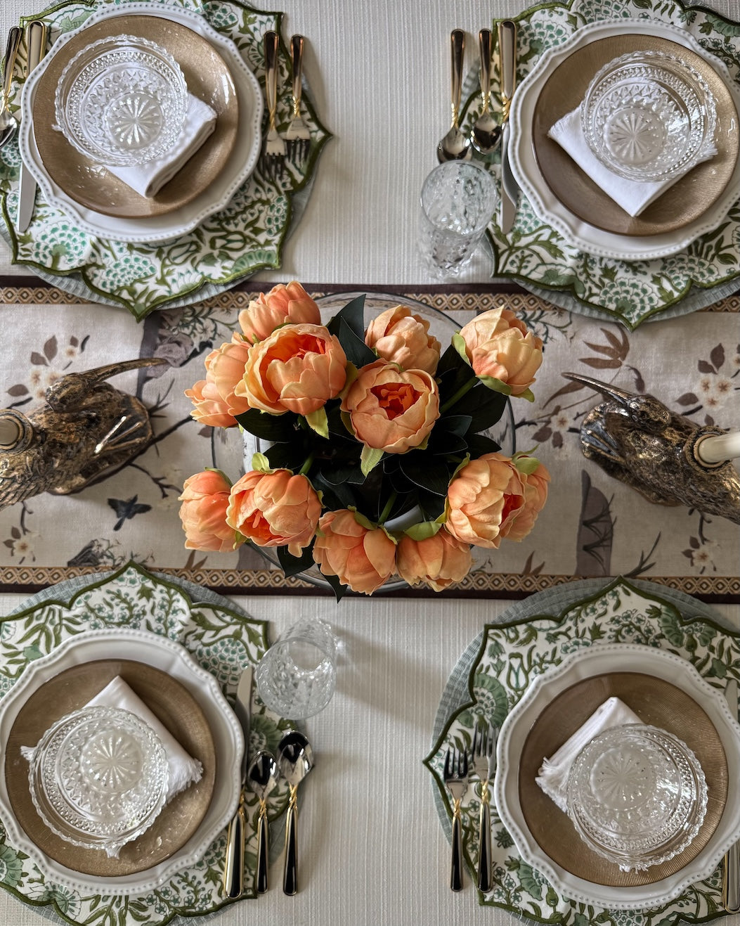 Each placemat is hand-printed and embroidered by artisans, crafted with care from 100% breathable cotton. The scalloped edges and double-layered design add a touch of vintage charm that feels both luxurious and familiar.