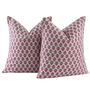 Floral Cotton Pillow Covers - Red and Gray (Set of 2)