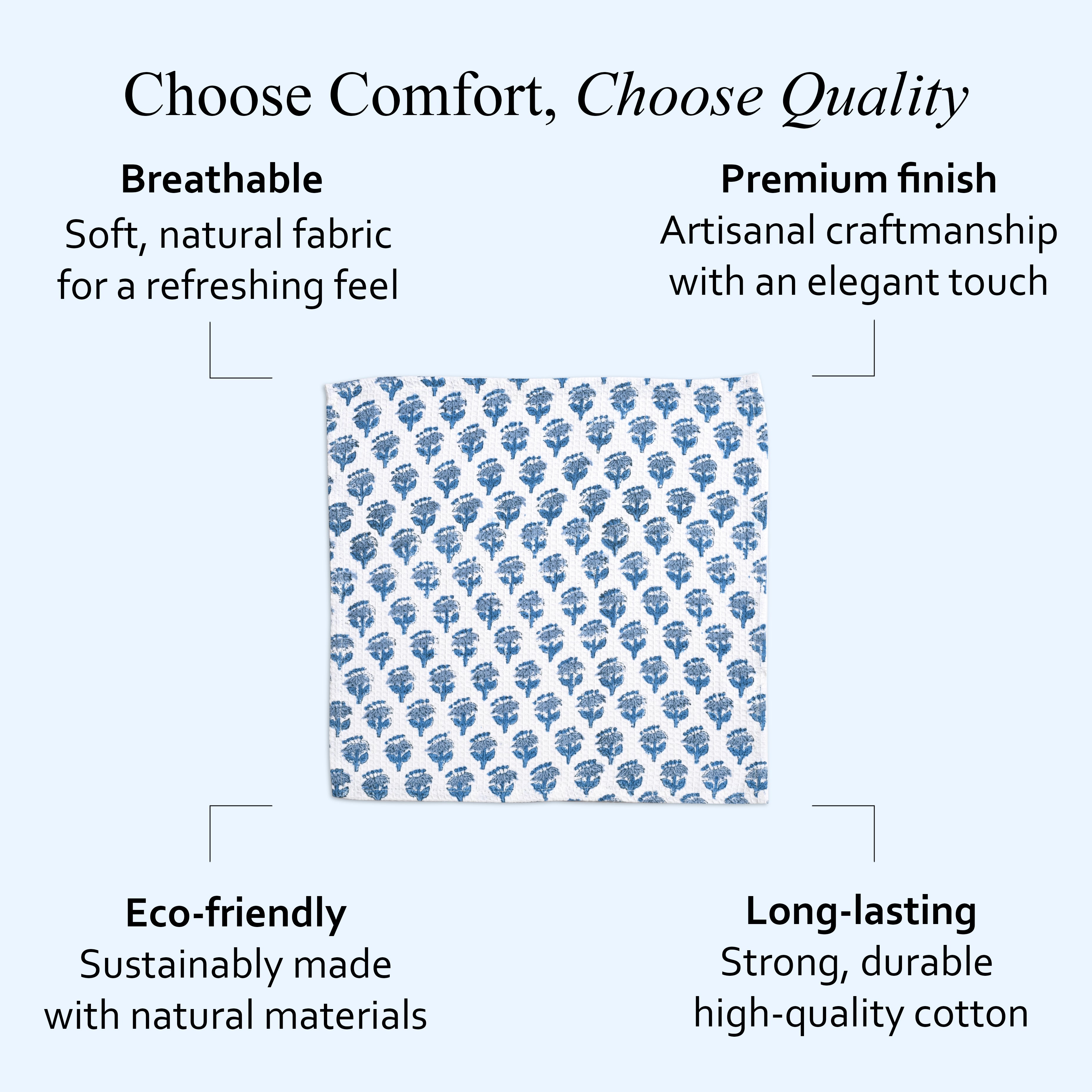 Elevate your kitchen with the artisan beauty and everyday functionality of our Hand Block Printed Waffle Kitchen Towels.
