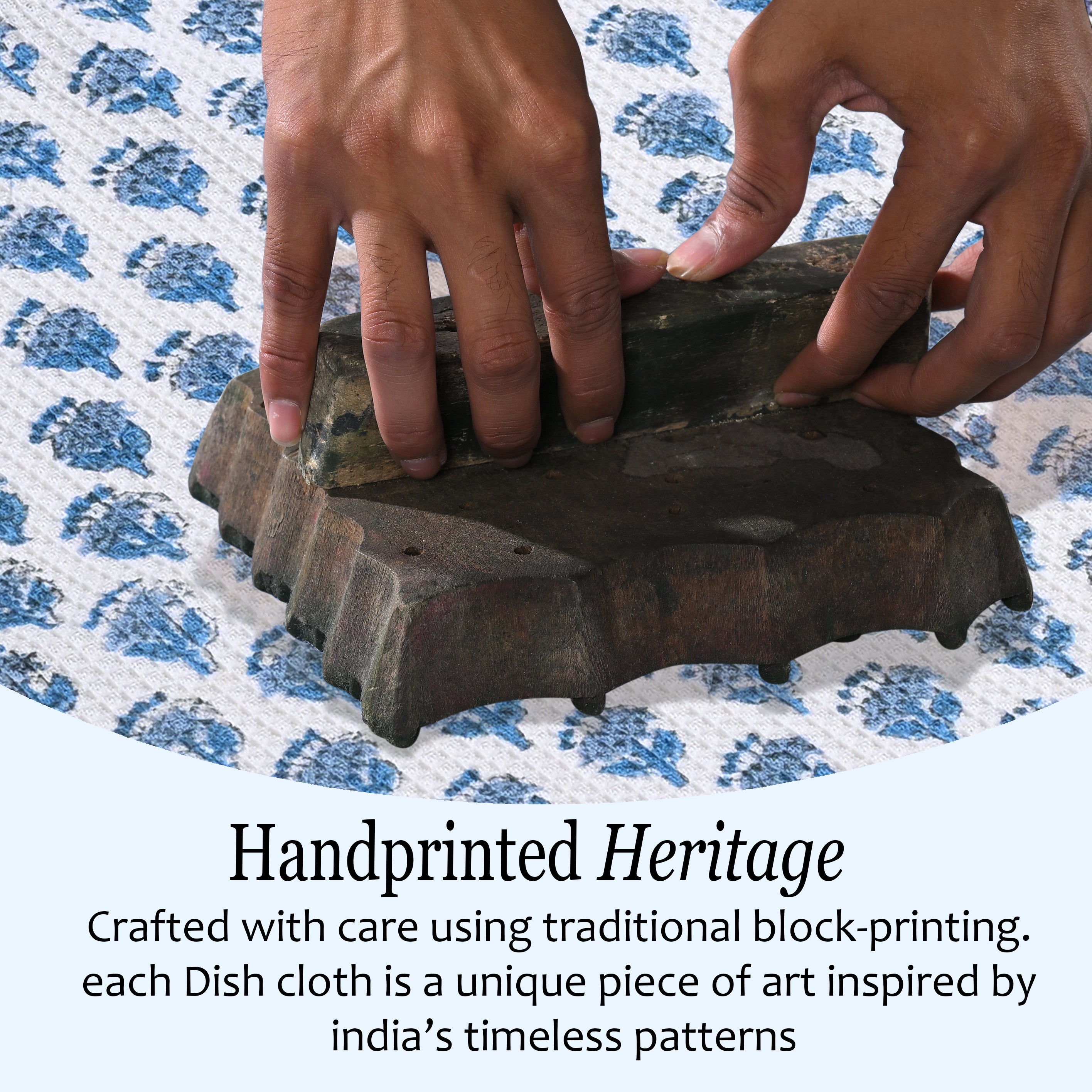 Lovingly handcrafted using traditional Indian hand block printing techniques, each towel is a one-of-a-kind expression of artistry. Woven from 100% premium cotton with a waffle texture, they offer high absorbency, quick-drying performance, and a lightweight feel—perfect for drying dishes, wiping hands, or adding a charming touch to your kitchen décor.