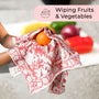Each towel measures 16 x 28 inches, the perfect size for drying dishes, wiping hands, or lining bread baskets and trays.
