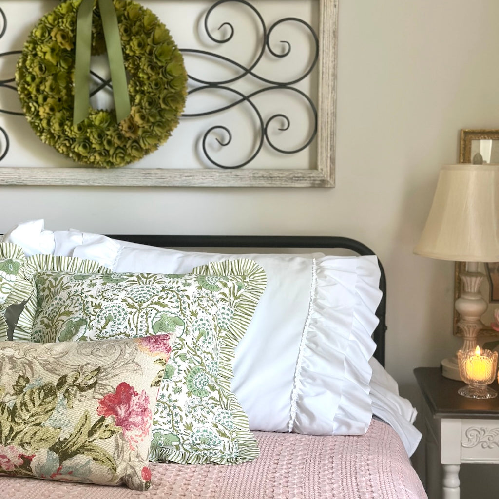 Elevate your home with the timeless charm of our cotton ruffle pillow covers. Perfect for grandmillennial, farmhouse, and French country decor, these delicate yet durable covers add soft elegance to any space.