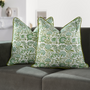 Elevate your space with hand-block printed pillow covers featuring double-sided prints, piped edges, and 100% breathable cotton — made for grandmillennial charm and modern comfort.