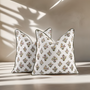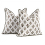 Elevate your home with the timeless charm of hand-block printed cotton pillow covers. Designed for grandmillennial, farmhouse, and boho decor, these pillow covers feature double-sided printing, refined piping along the edges, and a hidden zipper closure for a polished, luxurious look.