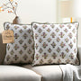 Elevate your space with hand-block printed pillow covers featuring double-sided prints, piped edges, and 100% breathable cotton — made for grandmillennial charm and modern comfort.