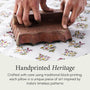 Use a mild detergent to protect the natural fibers and preserve the vibrant colors of our block prints.