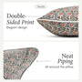 Elevate your home with the timeless charm of hand-block printed cotton pillow covers. Designed for grandmillennial, farmhouse, and boho decor, these pillow covers feature double-sided printing, refined piping along the edges, and a hidden zipper closure for a polished, luxurious look.