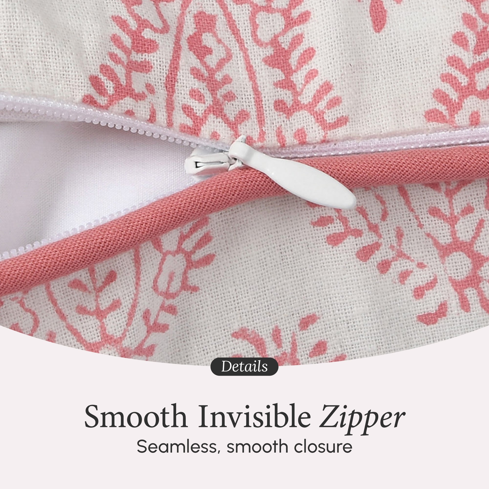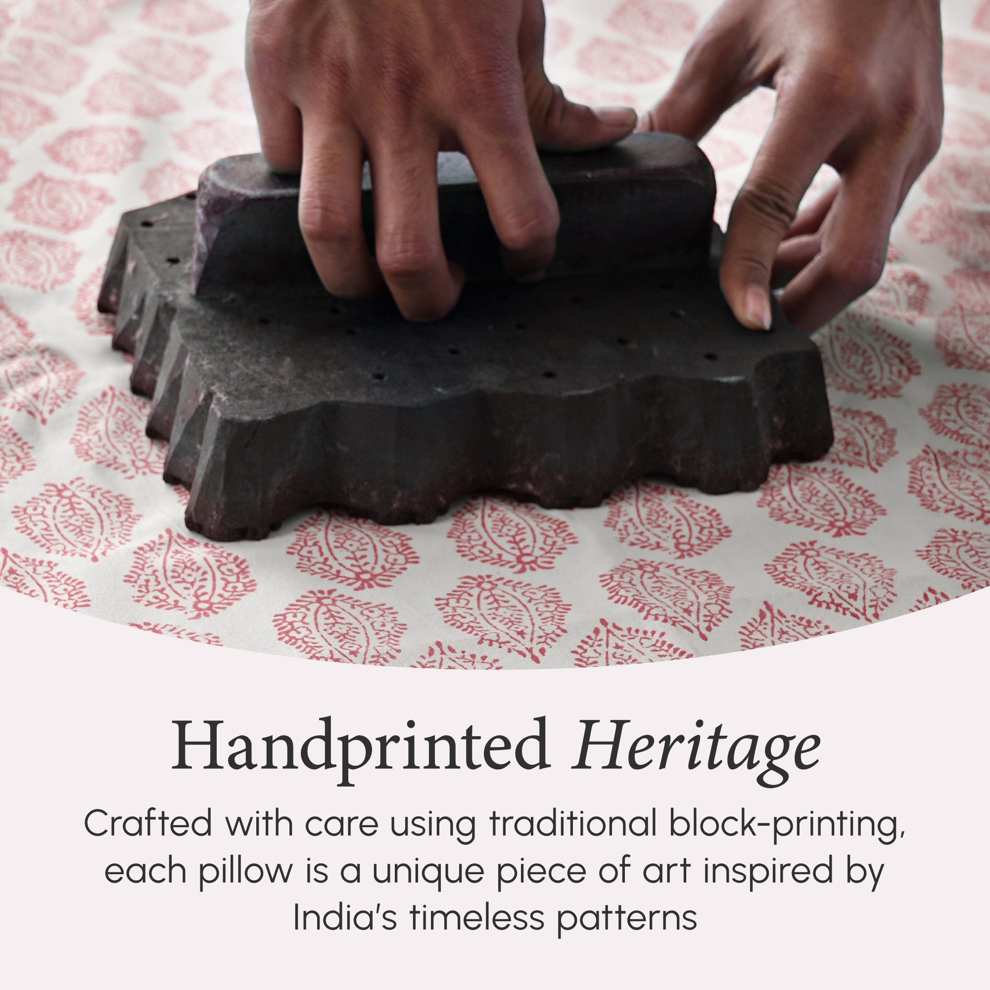 Elevate your home with the timeless charm of hand-block printed cotton pillow covers. Designed for grandmillennial, farmhouse, and boho decor, these pillow covers feature double-sided printing, refined piping along the edges, and a hidden zipper closure for a polished, luxurious look.