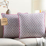 Elevate your space with hand-block printed pillow covers featuring double-sided prints, piped edges, and 100% breathable cotton — made for grandmillennial charm and modern comfort.