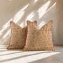 Elevate your space with hand-block printed pillow covers featuring double-sided prints, piped edges, and 100% breathable cotton — made for grandmillennial charm and modern comfort.