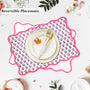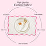 Each placemat is hand-printed and embroidered by artisans, crafted with care from 100% breathable cotton. The scalloped edges and double-layered design add a touch of vintage charm that feels both luxurious and familiar.