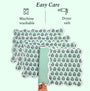 For best results, tumble dry on low heat or air dry. Air drying is recommended to preserve the longevity of the cotton fabric and the print.