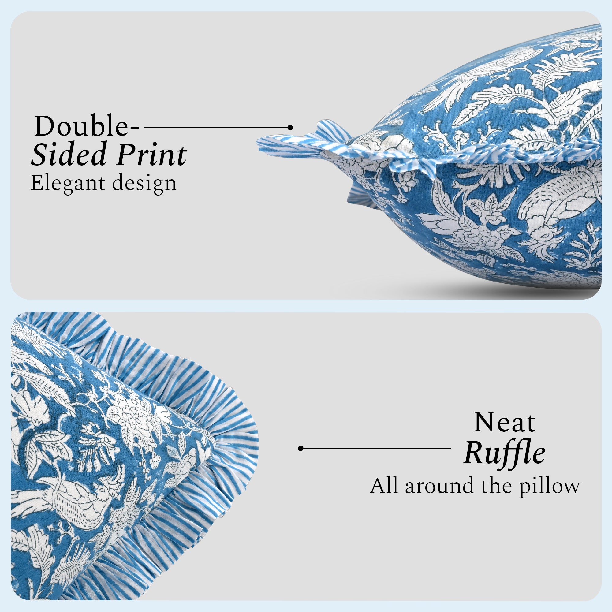 With gentle ruffle trim and breathable cotton, they create a cozy, vintage-inspired retreat—ideal for reading nooks, sunlit bedrooms, and rustic living rooms. Pair with floral quilts or antique furniture for a look that’s effortlessly chic.