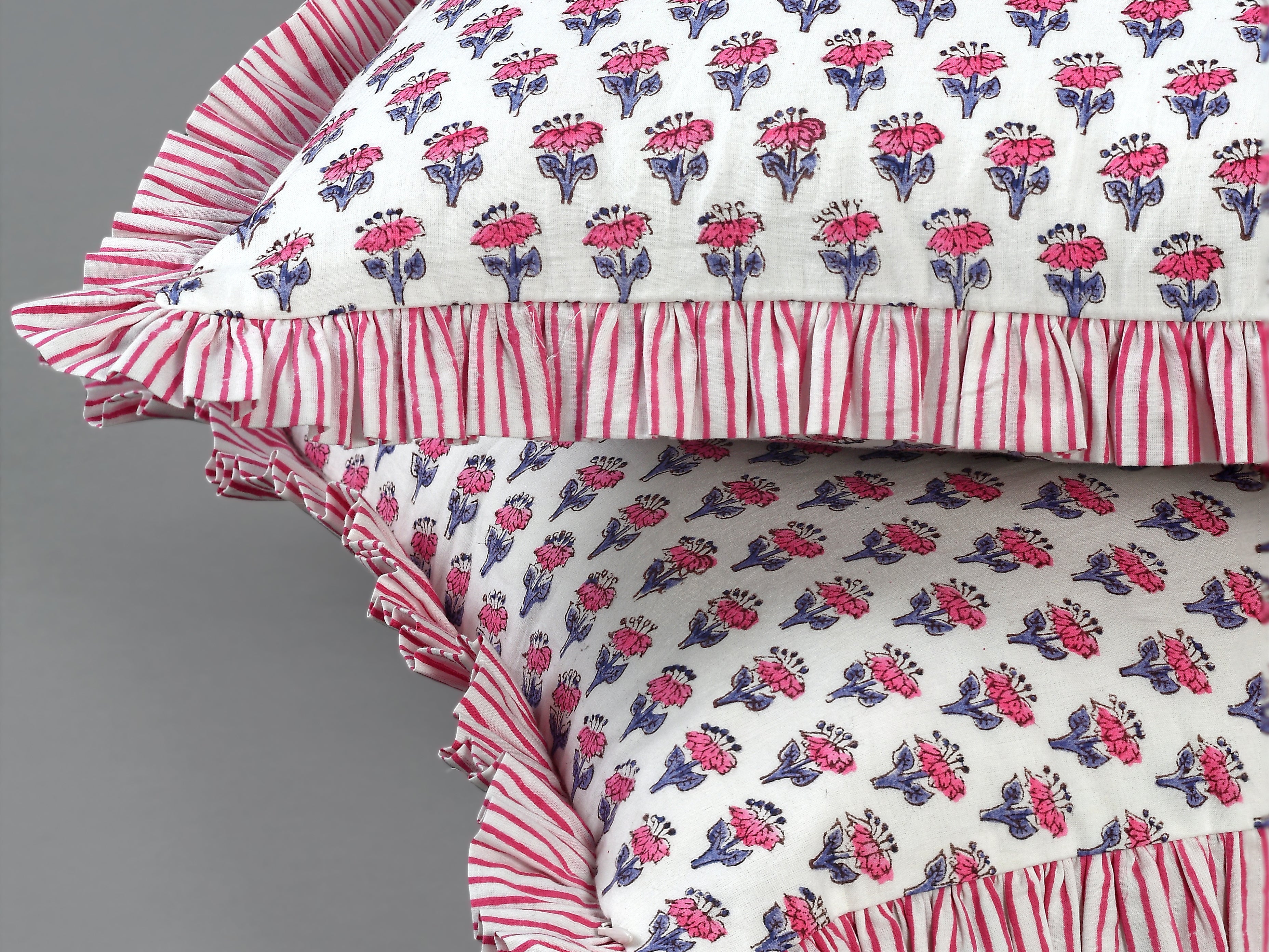 Elevate your home with the timeless charm of our cotton ruffle pillow covers. Perfect for grandmillennial, farmhouse, and French country decor, these delicate yet durable covers add soft elegance to any space.