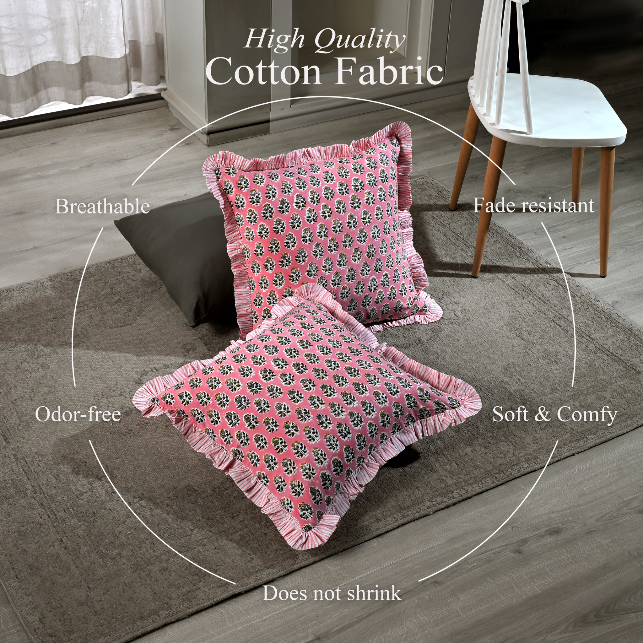 With gentle ruffle trim and breathable cotton, they create a cozy, vintage-inspired retreat—ideal for reading nooks, sunlit bedrooms, and rustic living rooms. Pair with floral quilts or antique furniture for a look that’s effortlessly chic.