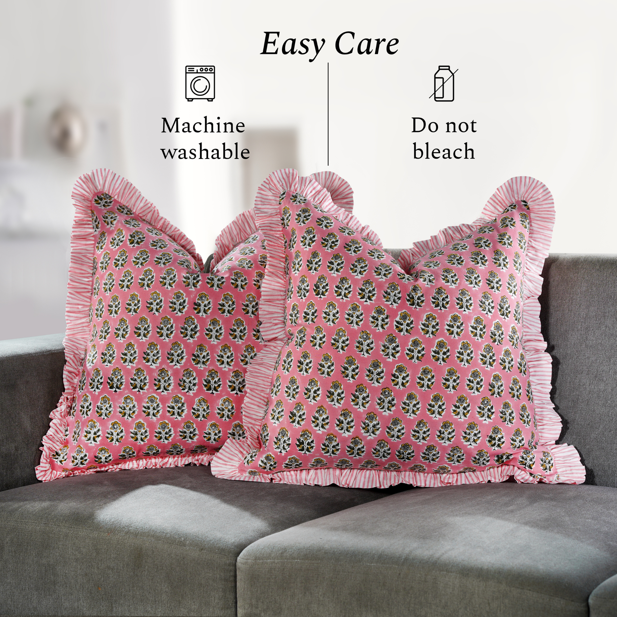 Use a mild detergent to protect the natural fibers and preserve the vibrant colors of our block prints.