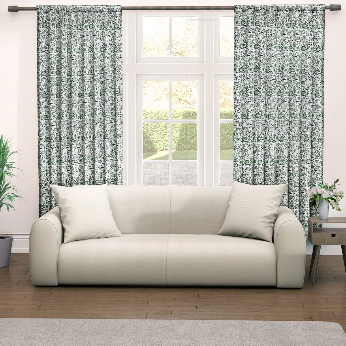 Semi-Sheer Cotton Block Print Curtains - Agate Green